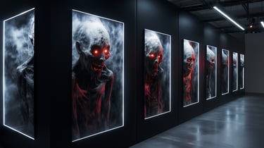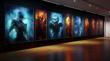 The FrightSpace collection includes a portfolio of more than 50 unique artwork pieces, exploring multi-dimensional grotesquery and horror-themed entities, captured and crafted digitally utilizing unorthodox creative processes.